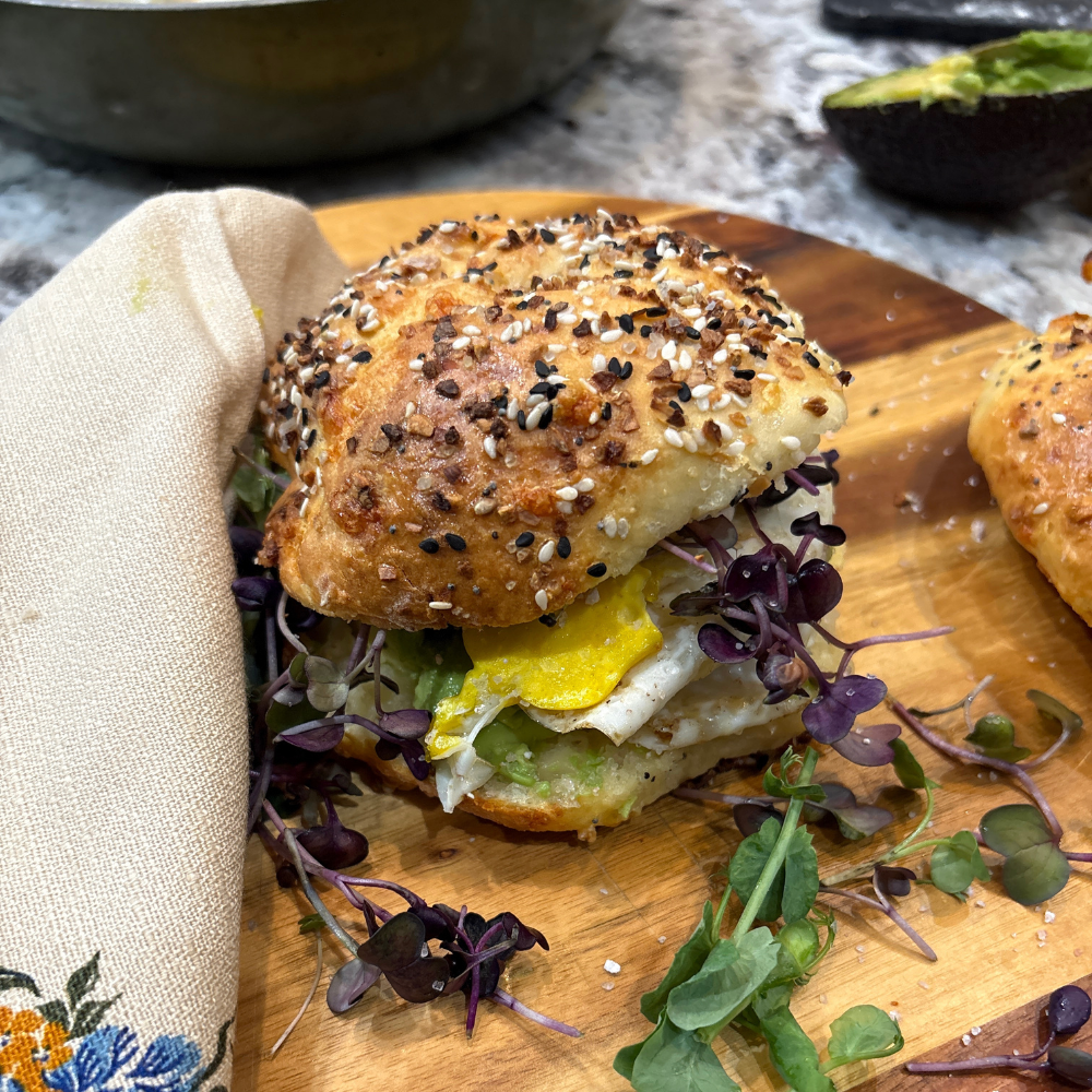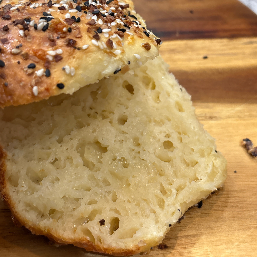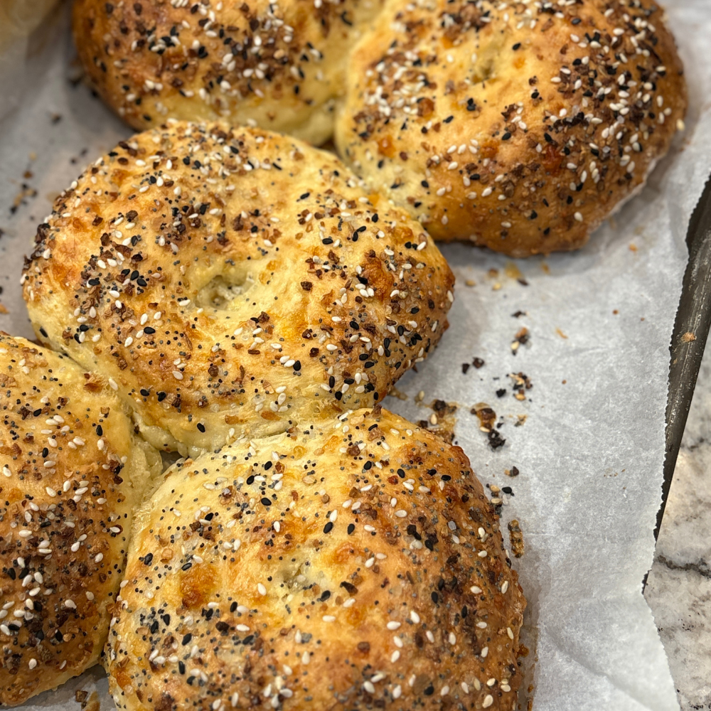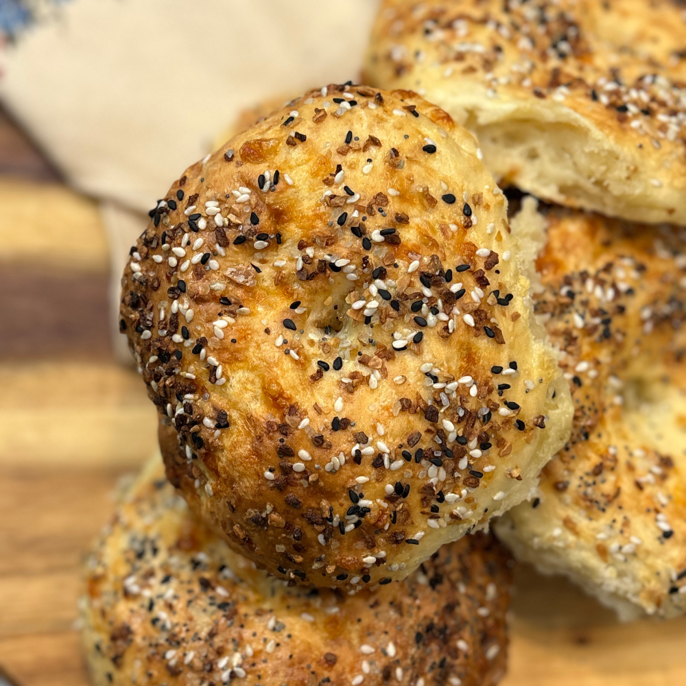 Be Creative Here: Everything bagel seasoning, parmesan cheese, shredded cheese & sliced jalapeño, cinnamon & sugar – the options are endless!!