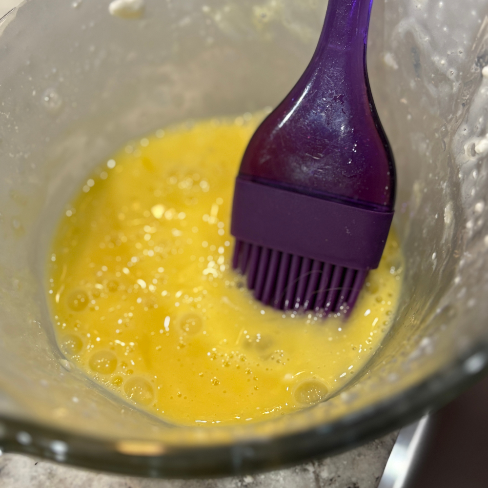 7. In a separate bowl place 1 egg with 2 tablespoons of water, whisk together.